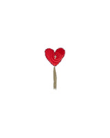 This exquisite heart brooch showcases the luxurious texture of devoré velvet in a striking red hue, adorned with a delicate central tassel that adds movement and charm.