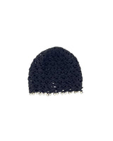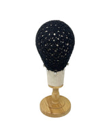 Black wool crocheted bonnet hat with pearls