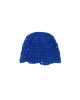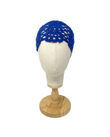 Experience the perfect blend of style and comfort with this electric blue wool crocheted bonnet, meticulously handcrafted in Italy.