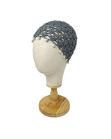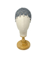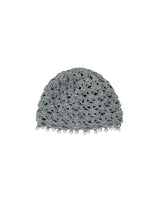 Grey wool crocheted bonnet hat with pearls