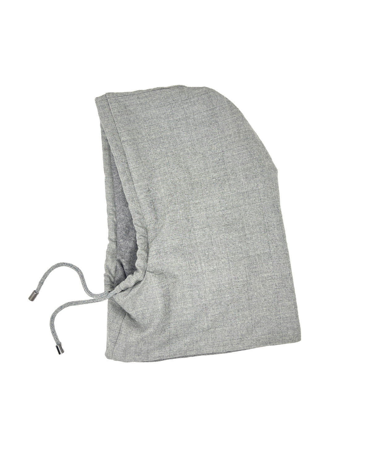 Experience understated elegance with this light grey checked cashmere balaclava, expertly fashioned from exclusive deadstock textiles originally destined for high-end menswear.