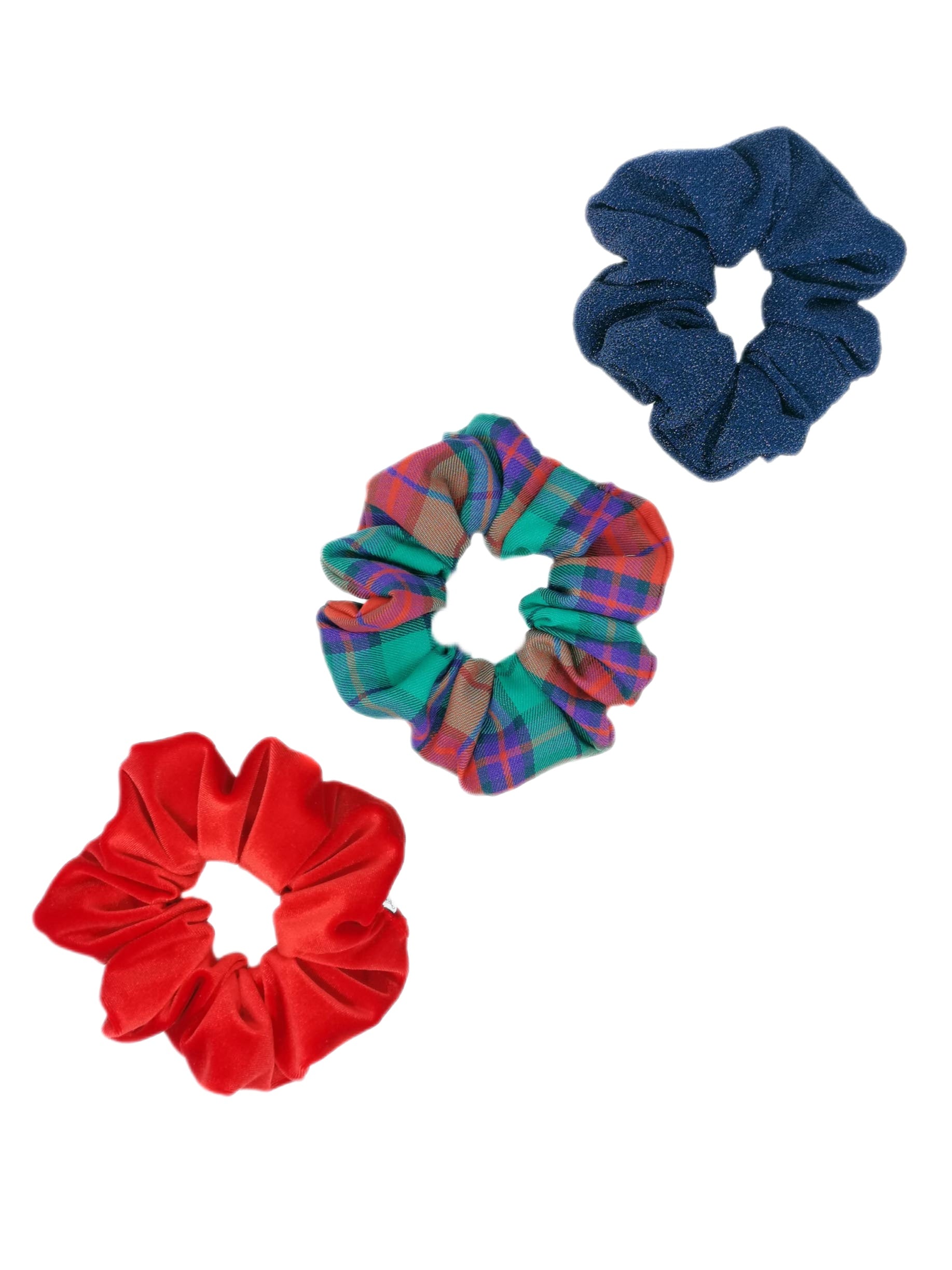 Set di 3 fermacoda in lanetta fantasia scozzese verde/rosso