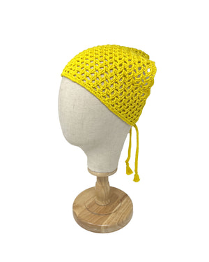 Indulge in our handmade crochet hair bandana in vibrant yellow.