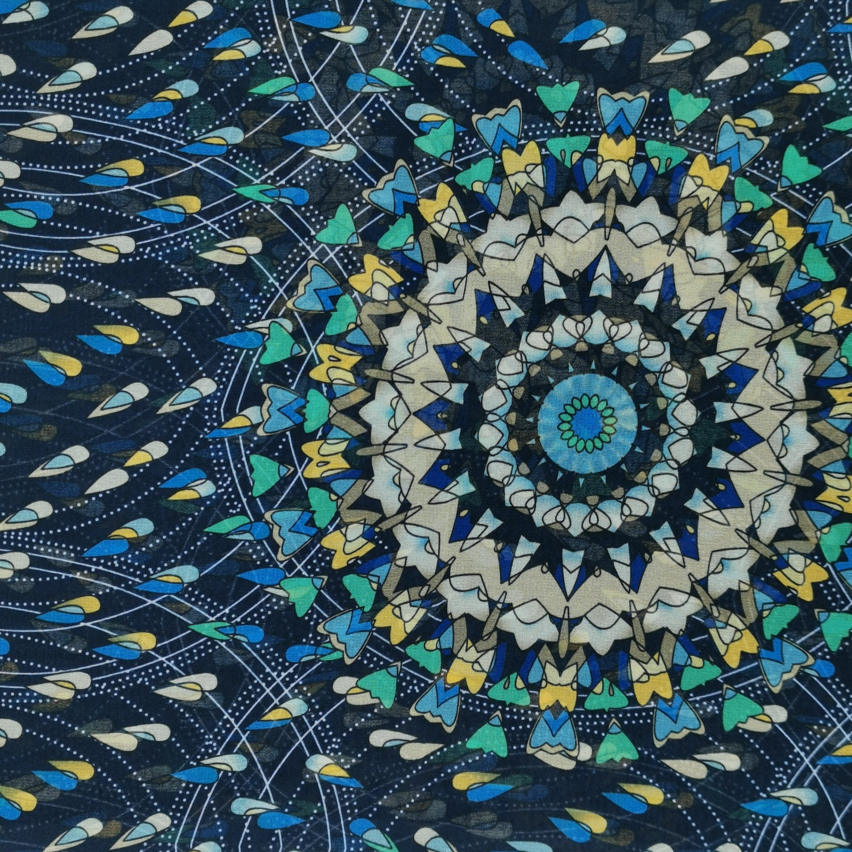 Fascia modello "incrocio" in crepe di voile blu fantasia