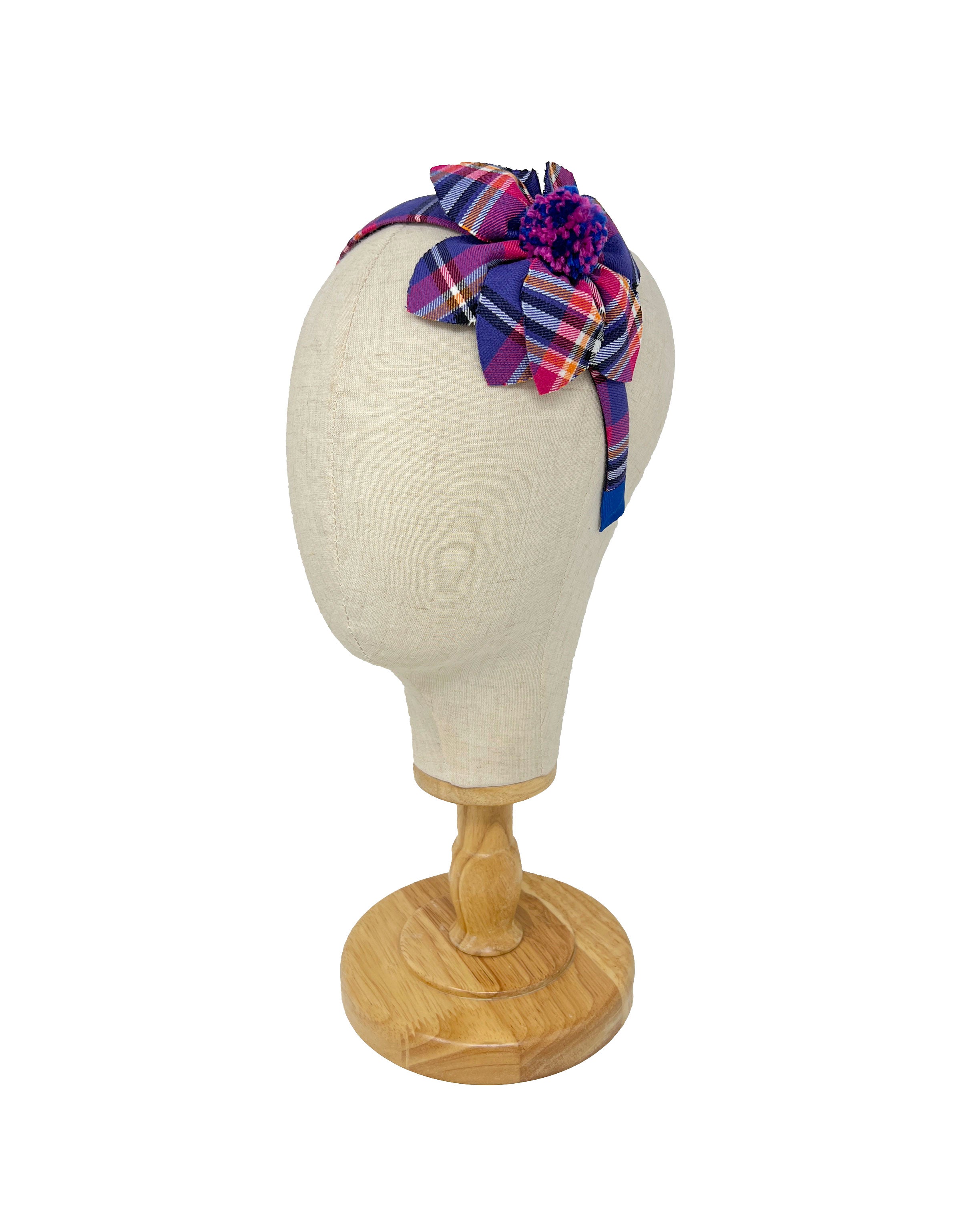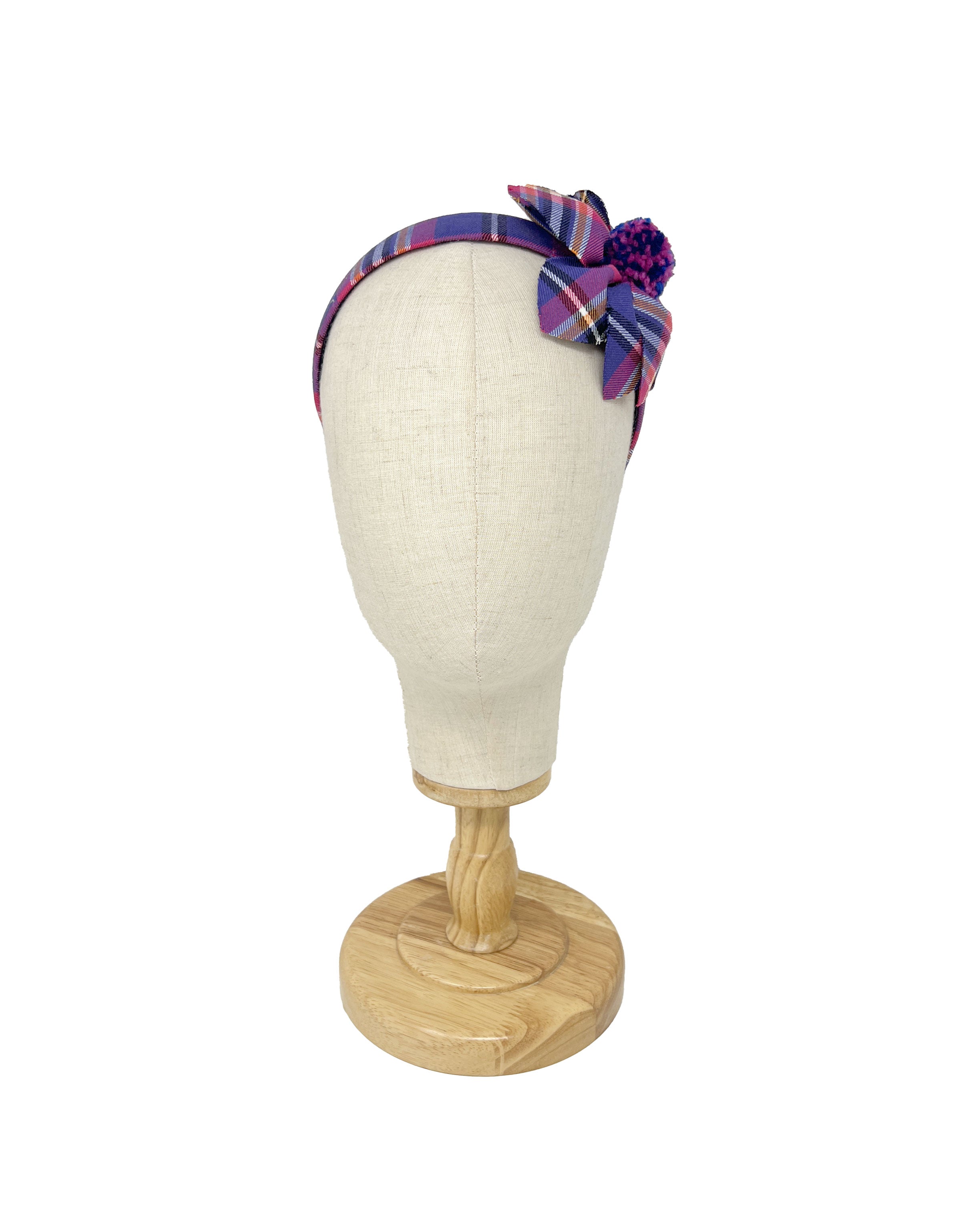 Transform any outfit into a statement piece with our Violet Tartan Flower Hairband!